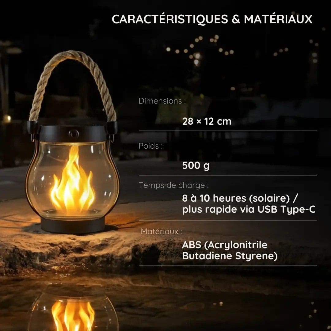 Alimentée à l’énergie solaire, elle s’active automatiquement au crépuscule, recrée l’illusion d’une flamme vacillante, et transforme vos espaces extérieurs en véritable havre de lumière.