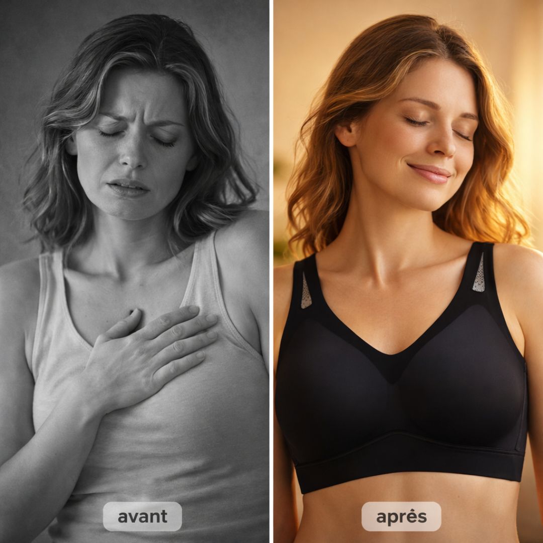 Les douleurs mammaires, la lourdeur en fin de journée, cette gêne permanente 😣 Les soutiens-gorge classiques maintiennent mais n'apaisent jamais.