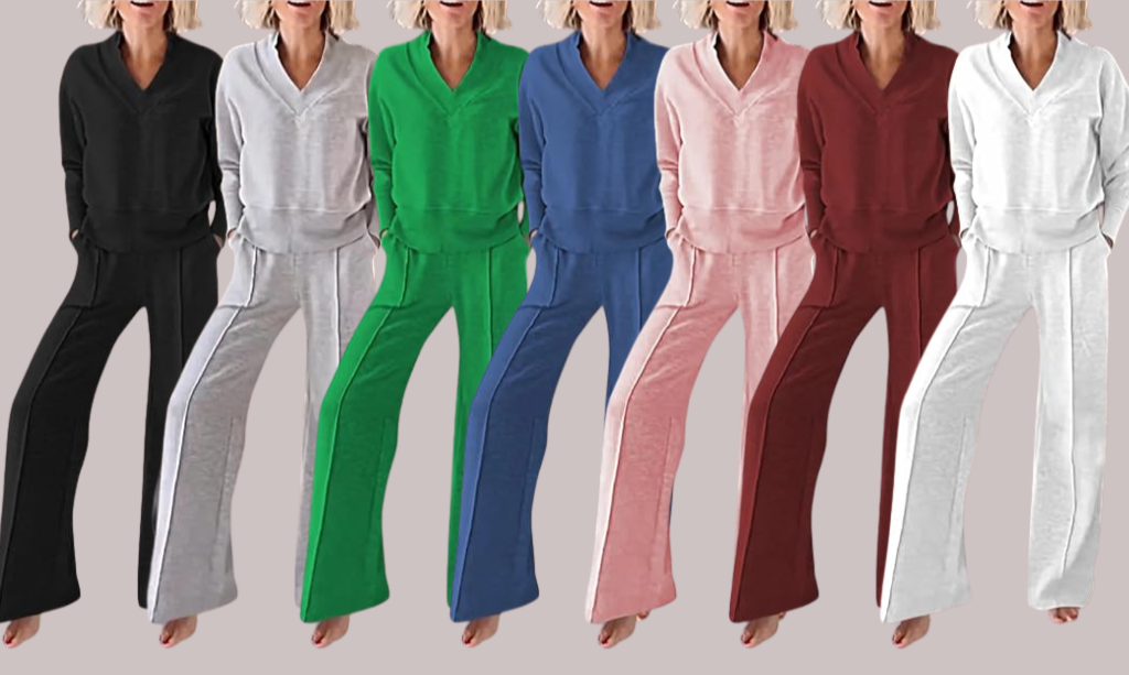 Composé d’un haut à col en V et d’un pantalon fluide assorti, il offre une silhouette chic et moderne sans effort, idéale pour toutes les occasions.