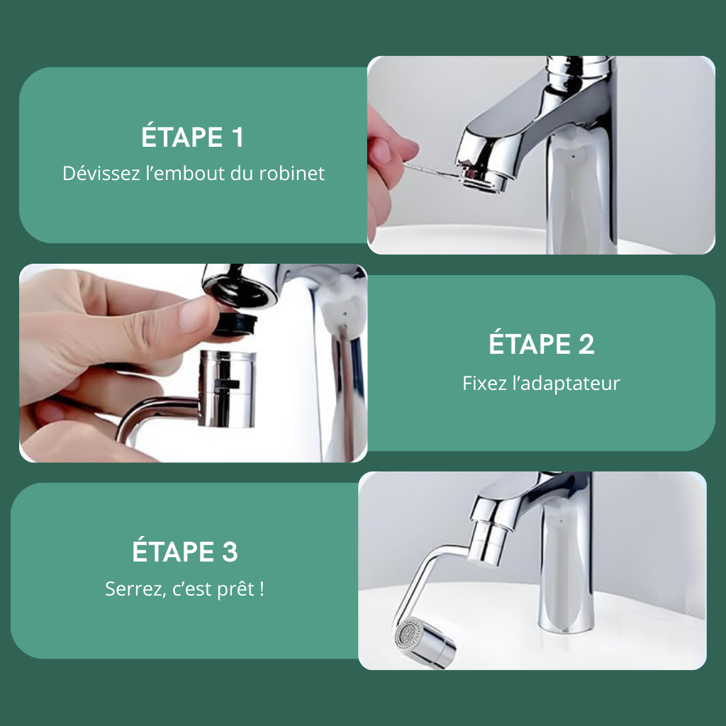 Adaptateur robinet 360° – Jet réglable & installation facile