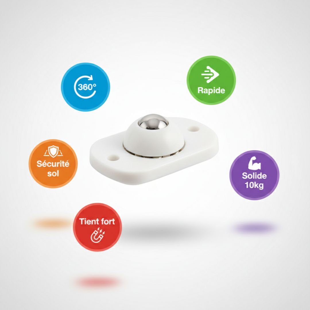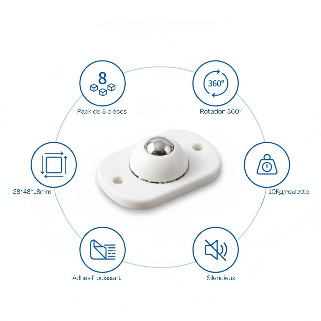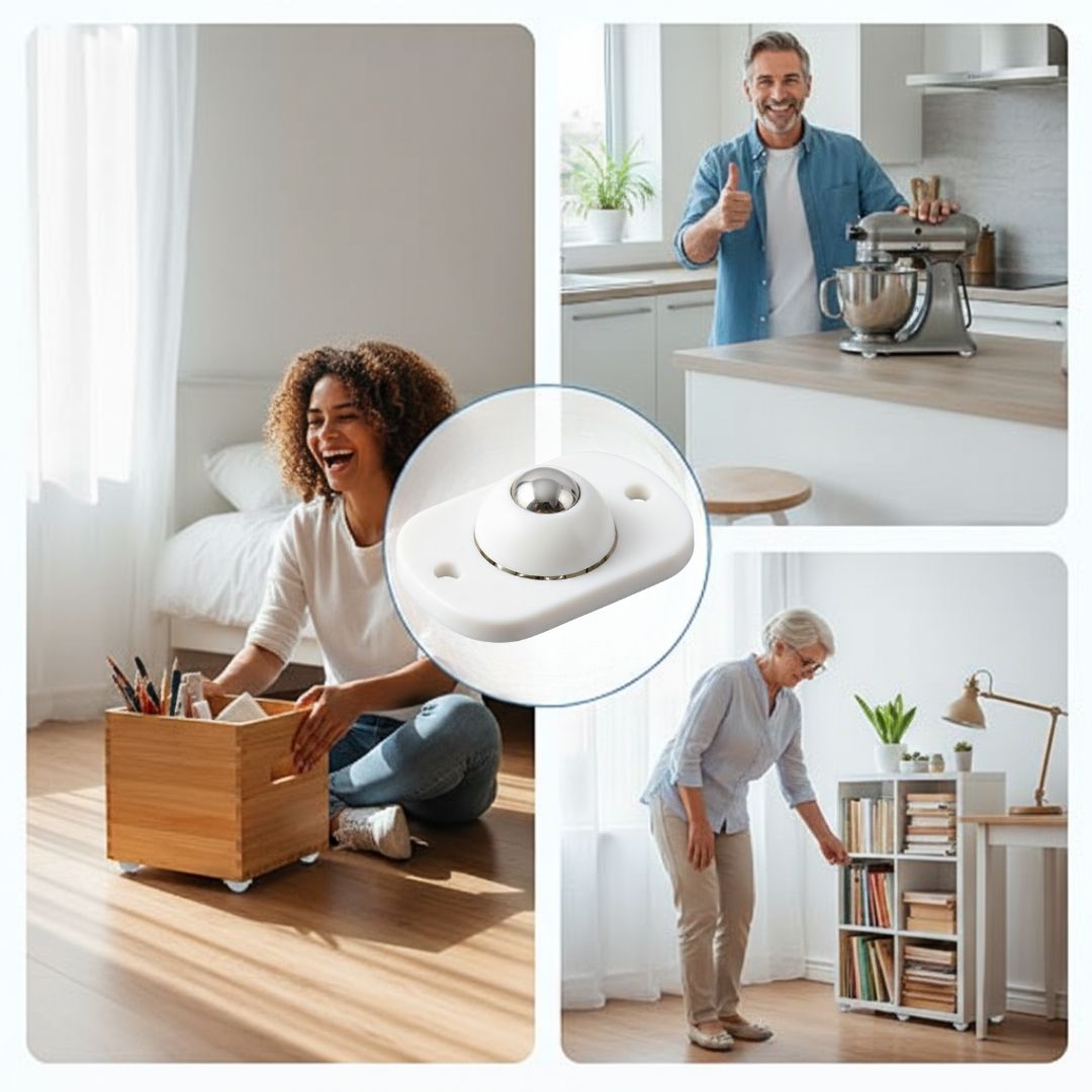 RollEase™ - Mini Roulettes Auto-Adhésives Pivotantes 360°